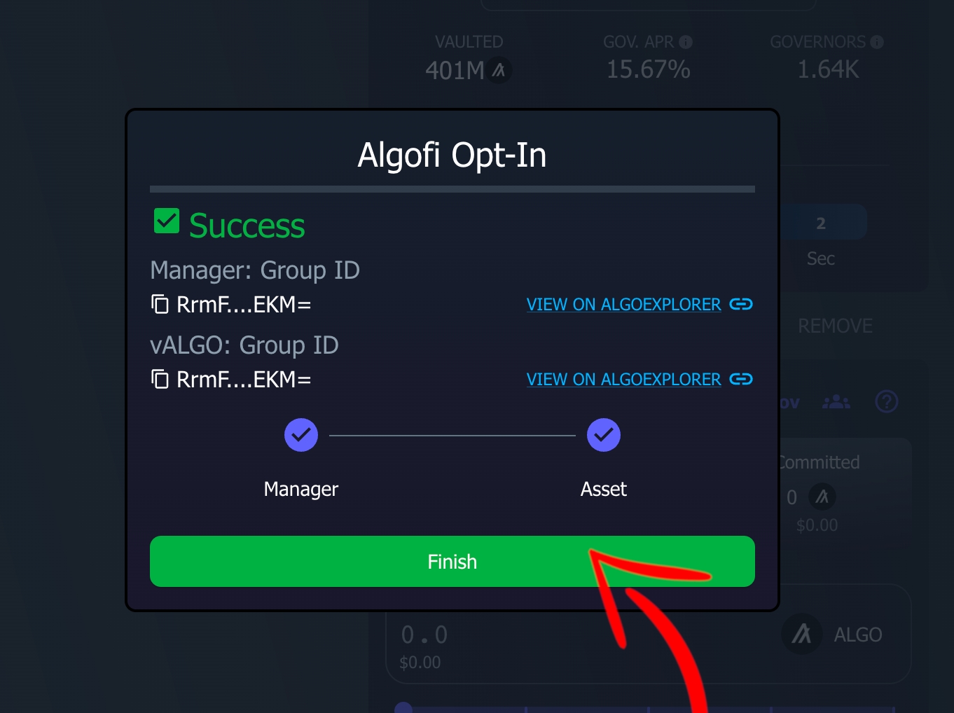 14. Maintenant que vos ALGO sont dans le coffre-fort d’Algofi, vous avez désormais la possibilité de les engager dans la gouvernance d’Algorand.