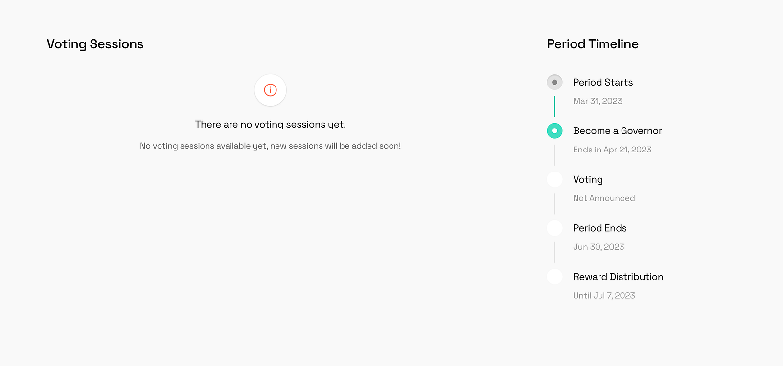 10. Toujours sur la page principale, quand vous descendez un peu vers le bas vous pouvez voir le calendrier détaillée de la période de gouvernance en cours.