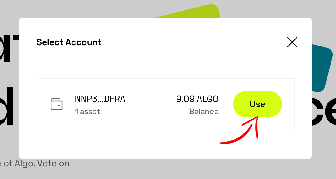 4. Cliquez sur “Use” pour connecter votre adresse au site.