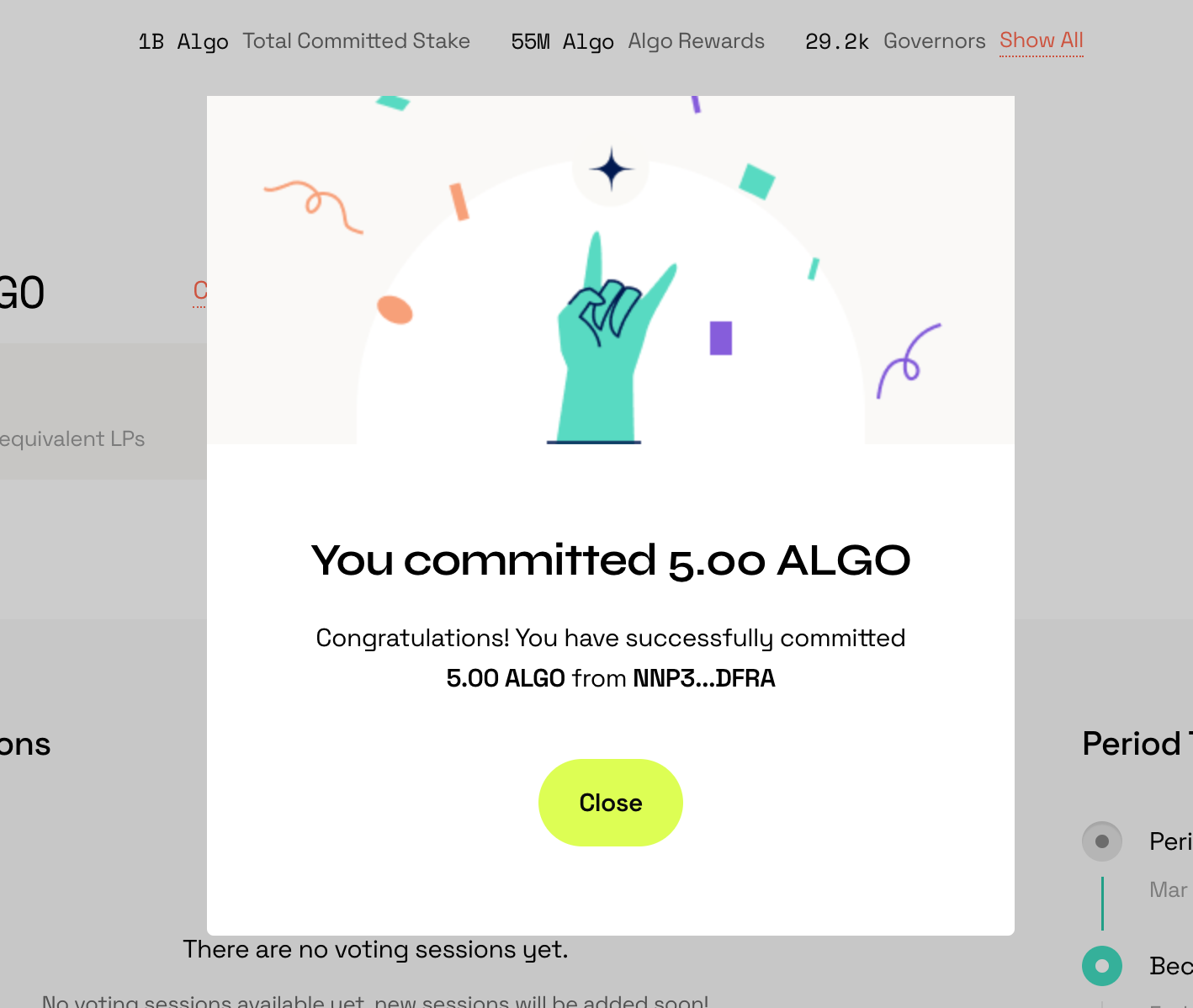 8. Quand la transaction est validée, vous devenez officiellement un gouverneur Algorand.