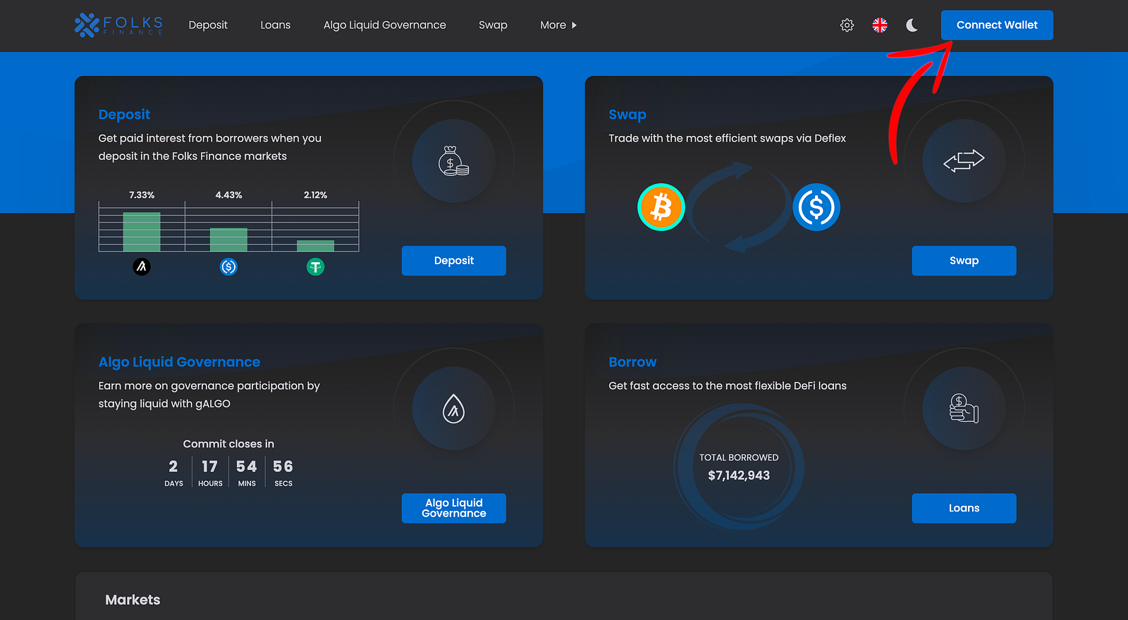 2. Cliquez sur “Connect Wallet” en haut à droite.