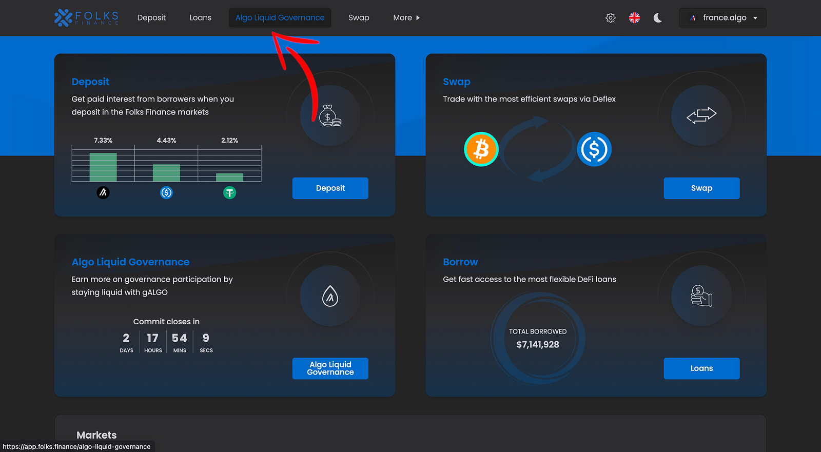 4. Cliquez sur “Algo Liquid Governance” dans le menu en haut.
